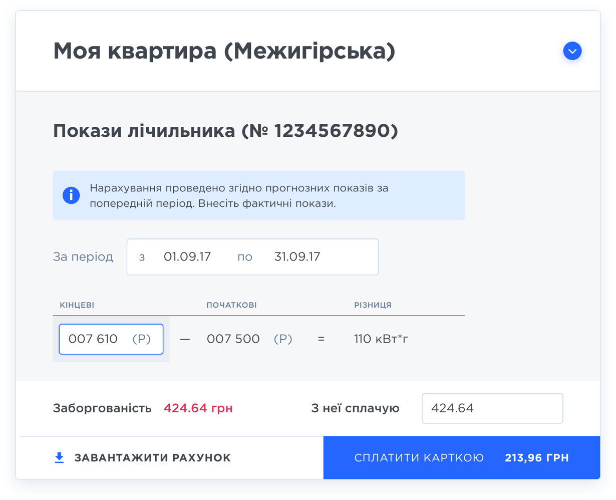 Безкоштовно Щоб зареєструватися в Особистому кабінеті потрібно знати номер свого особового рахунка. Постачальник yasno формує рахунки на основі обсягів споживання розрахованих оператором ГРМ. Оплатить за электроэнергию или природный газ без комиссии. Если по данному лицевому счёту пока не совершался платёж но выдаётся данное сообщение вероятно платёж был сделан прошлыми владельцами или был.